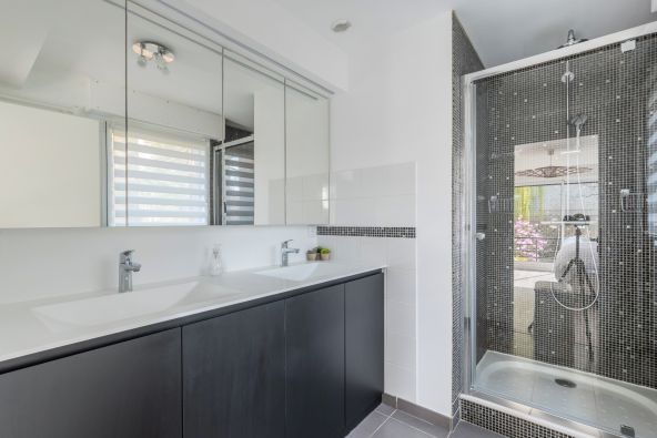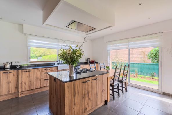 EXCLUSIVITY / Popular sector / House 230 m2, 5 bedrooms, 3 bathroom,2 offices on 880m2 of plotLovely cubic house built in 2010 and erected on a plot of 881 m², fully fenced. The property has benefited from numerous improvements and renovations since 2020. Behind its large automatic gate installed in 2021 and its four parking spaces with electrical connections, also fitted out in 2021, discover this charming cubic house offering a living area of 218 m² (256 m² useful). On the ground floor is a beautiful entrance with custom built-in cloakroom, and a toilet cubicle. After, the house offers a large separate kitchen, renovated in 2022, with triple exposure and electric shutters. The kitchen has plenty of storage, a beautiful central island with a hob and a built-in extractor hood. The current plate is powered by gas, but the island also has electrical connections to accommodate an induction or mixed plate. The kitchen also has direct access to the terrace and garden through a glass door and a double sliding bay window. The large reception and family living space benefits from a quadruple exposure with notably three large double sliding windows offering a panoramic view of the landscaped garden and direct access to the large terrace. This large living room offers beautiful reception possibilities but also relaxation with a lounge area, and a dining area. It is also possible to install a fireplace, as the house already has the necessary conduit. Also on the ground floor: a first office with a nice view of the living room and the garden, thanks to a beautiful workshop bay and a French door allowing direct access to the garden. Upstairs, a corridor with storage closet serves the different rooms on this level. The large master suite, has a very large built-in wall dressing room and a private shower room, very bright and redone in 2022, with double sinks, heated towel rack and custom storage. This master suite benefits from a triple exposure and notably a large double sliding bay window, giving access to a balcony of 9m² overlooking the garden and offering a beautiful view of the surrounding greenery. In addition to the master suite and on the same floor, the house offers four other rooms of equivalent size. Three of these rooms have large built-in wardrobes. Also upstairs is a second shower room, redone in 2022, with toilet, heated towel rack, custom storage unit and hidden laundry hatch communicating with the RdC laundry room, as well as a third large bathroom with shower, bath and heated towel rack, and another separate toilet close to the master suite. Finally, the floor has a second office, renovated in 2021 with door and partition workshop and storage. This space is ideal for teleworking, or as a games room, TV room, etc. All rooms on the floor also have electric shutters. In addition to the renovations already mentioned, the parquet, paintings, lighting and all the cupboards on this floor were redone and fitted out between 2020 and 2022. The property has a pretty garden with flowers and trees, extended and completely refurbished in 2021, with electrical sockets and external taps, as well as a teak terrace of 47m², partially sheltered and illuminated, accessible directly from the kitchen and the living / dining room. The property also has a 10m3 (buried) rainwater collection cistern that can supply the garden and garage taps. Access from the entrance: a double car garage with motorized door, giving access to a beautiful cellar of 6m², under the garage, very healthy. Also accessible from the garage is a laundry room with lots of storage, and access to the garden, as well as a clever laundry trap from one of the three bathrooms on the floor. The supporting structure of the house was originally designed to accommodate an additional level, such as a roof terrace or a lightweight wooden frame structure. Walking access to the city center of Movaux with its many shops, services, sports and cultural facilities and green spaces. Energy and climate performance Diagnosis made before July 1, 2021