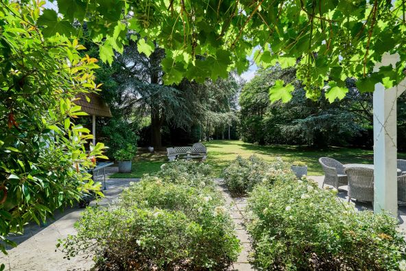 La suite parentale, en rez-de-jardin, dispose d’une chambre avec vue sur le parc, d’un dressing sur mesure et d’une salle de bains complète. Un bureau indépendant ainsi qu'une buanderie généreuse complètent ce niveau.