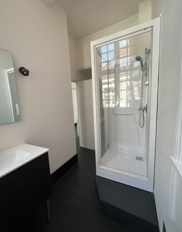 VIEUX LILLE RUE DE LA HALLE, BEL APPARTEMENT STUDIO D'ENVIRON 30M2 ENTIEREMENT RENOVESitué au 1er étage au sein d'un petit immeuble ancien entièrement rénové ayant gardé sa belle façade du 15è siècle. Bel appartement type studio de 29,98m2, entièrement rénové. Séjour lumineux avec cheminée décorative, cuisine séparée et aménagée (meuble bas + frigo + 2 plaques électriques). Salle de douches avec rangements et toilette séparé.