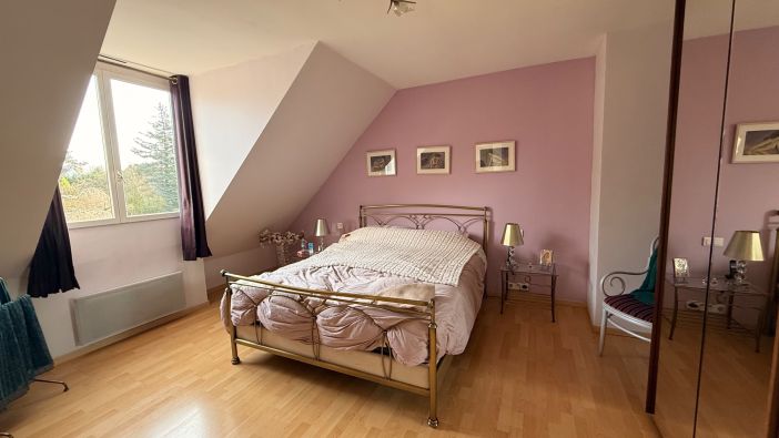À l’étage, un large palier distribue trois chambres enfants (dont deux avec point d’eau), une salle de bains complète, ainsi qu’une suite parentale confortable avec sa salle de bains privative.
