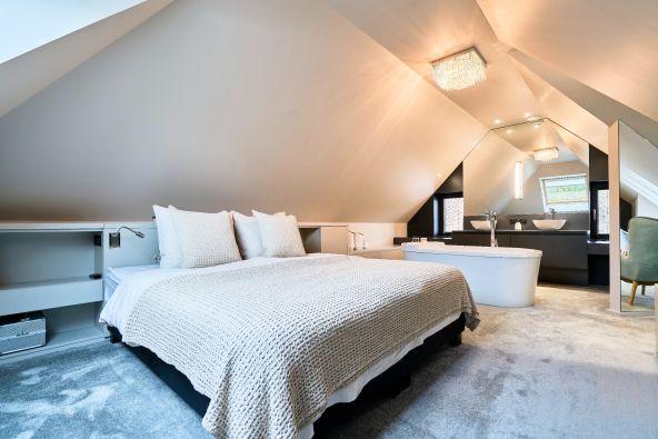 A guest bedroom with private bathroom and dressing room welcomes your guests in the greatest comfort.