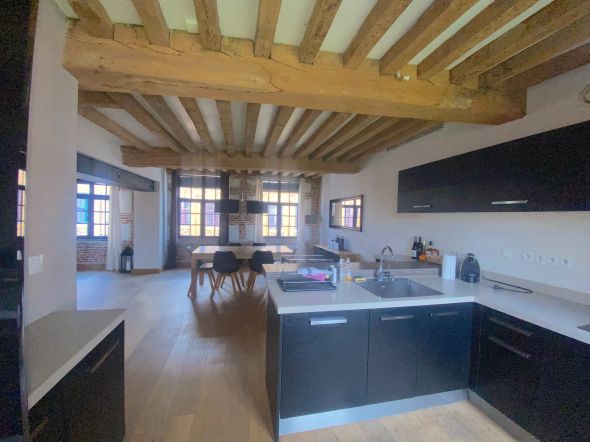 Au sein d'un immeuble très calme, entièrement rénové, superbe appartement de 129m2 en duplex, meublé offrant une combinaison parfaite de confort, luxe et emplacement idéal, faisant de lui un lieu de vie exceptionnel au cœur de Lille.